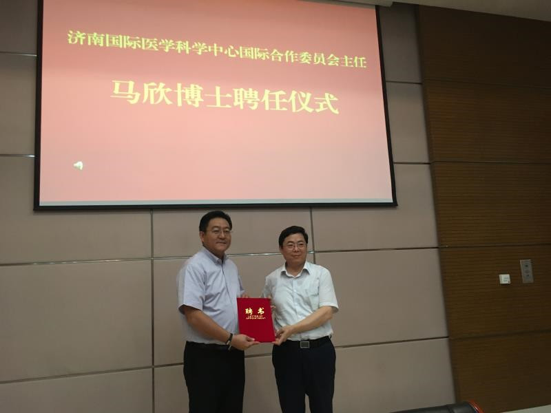 2017年7月27日,泰山学者、山东省政府医养健康产业智库专家马欣博士在济南市委组织部的直接关怀下,正式受聘为济南国际医学科学中心国际合作委员会主任,在美国建立济南国际医学科学中心海外人才工作站,推进国外优质医疗资源引进工作。