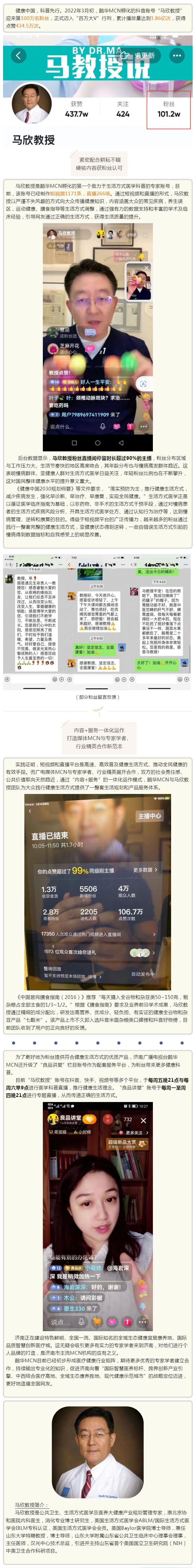 助力“康养济南”!鹊华MCN孵化账号“马欣教授”抖音粉丝突破百万